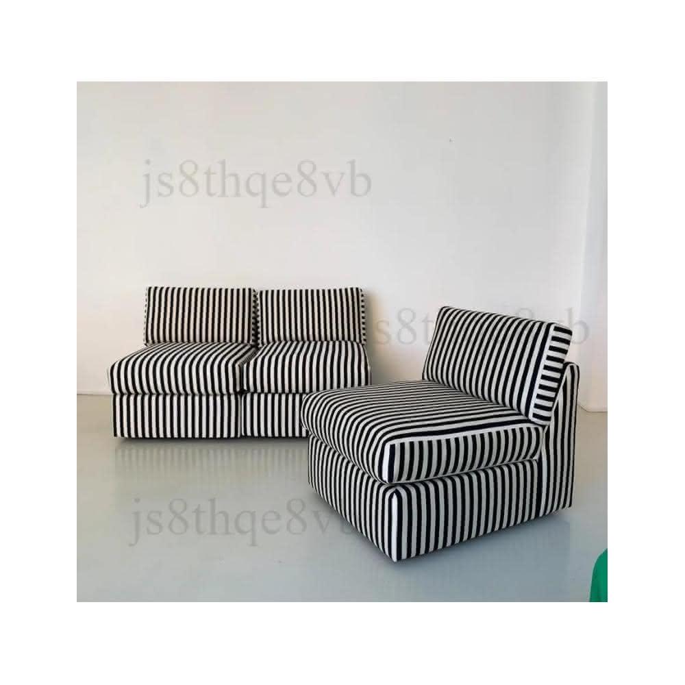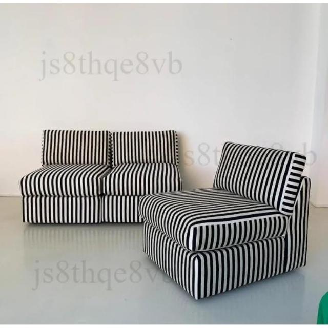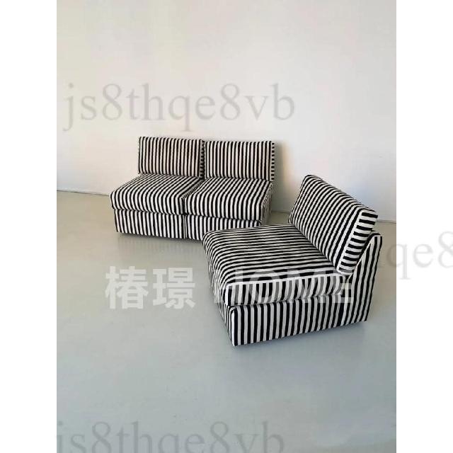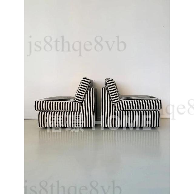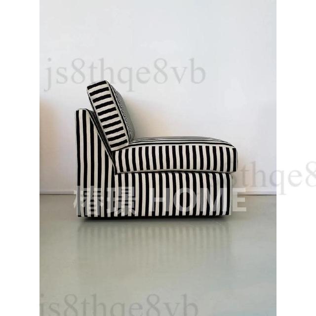 小眾設計師款復古風條紋布藝沙發中古風休閑黑白經典摩登單人沙發