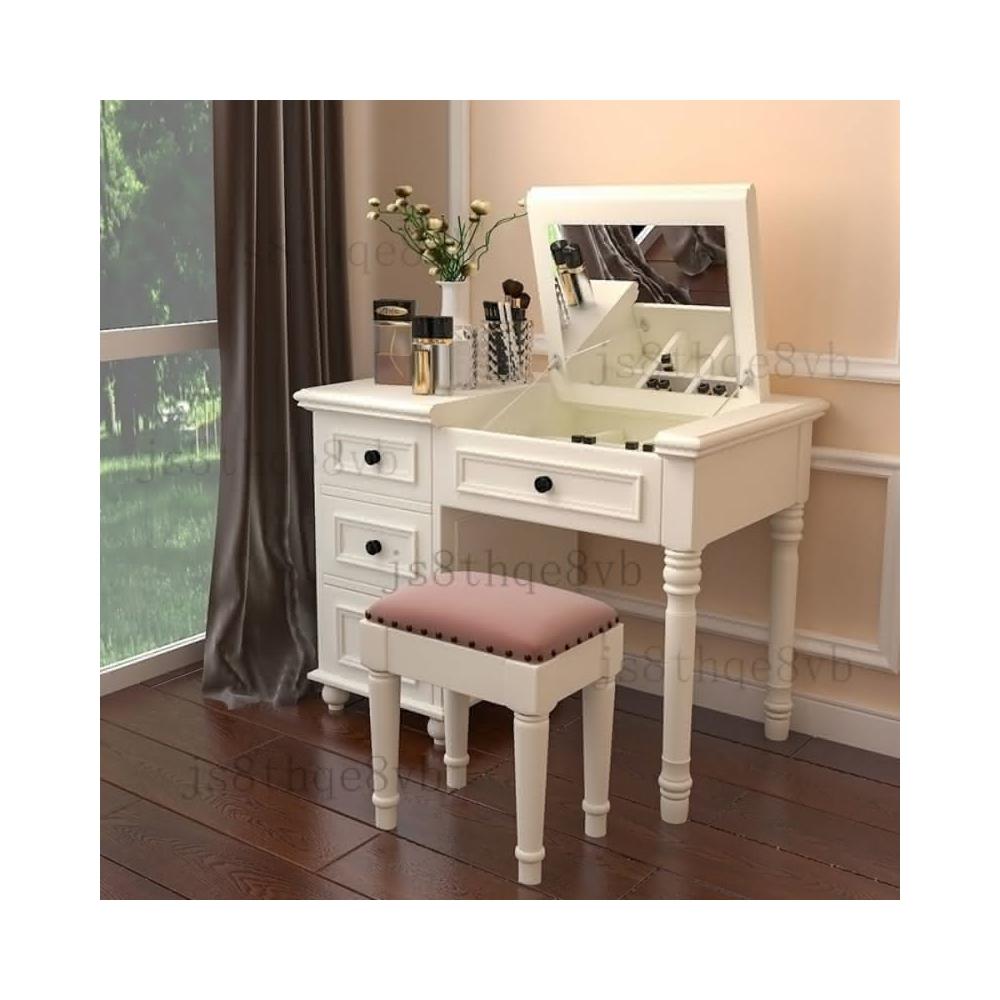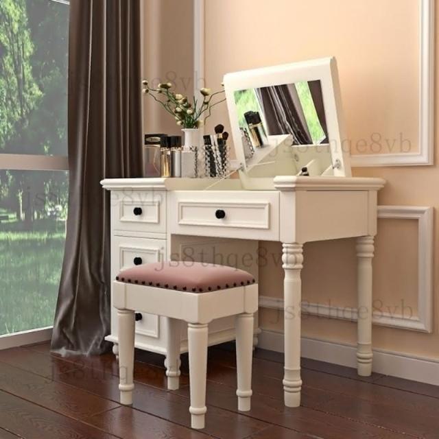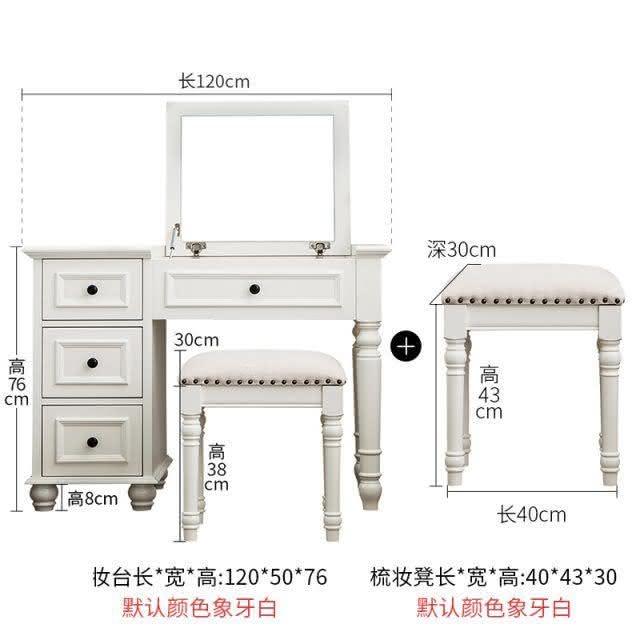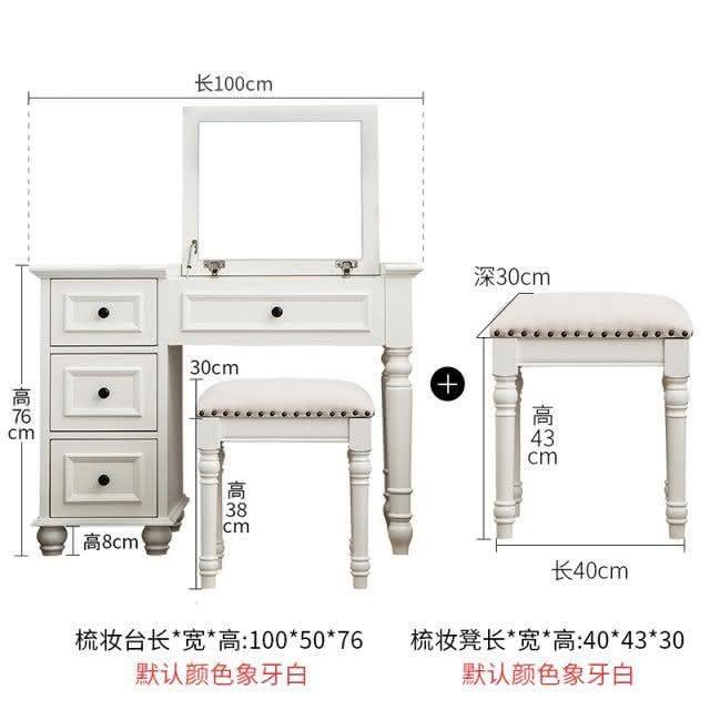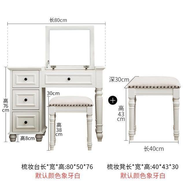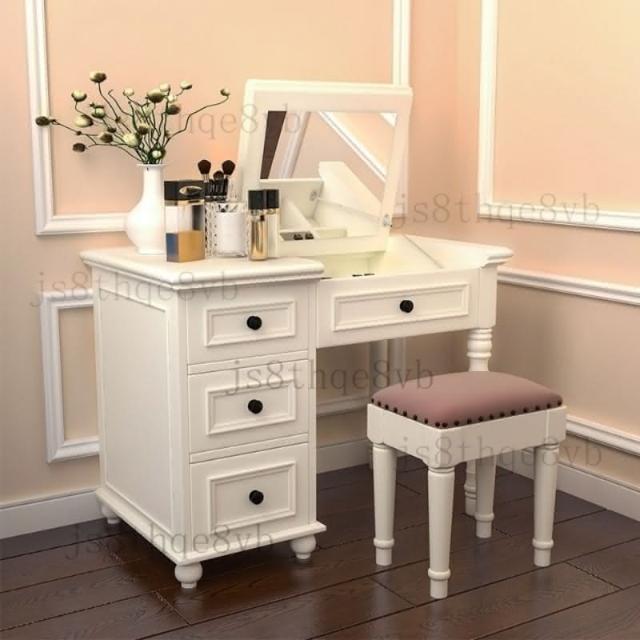 美式鄉村實木梳妝臺迷你翻蓋化妝桌臥室簡約現代白色梳妝桌小戶型