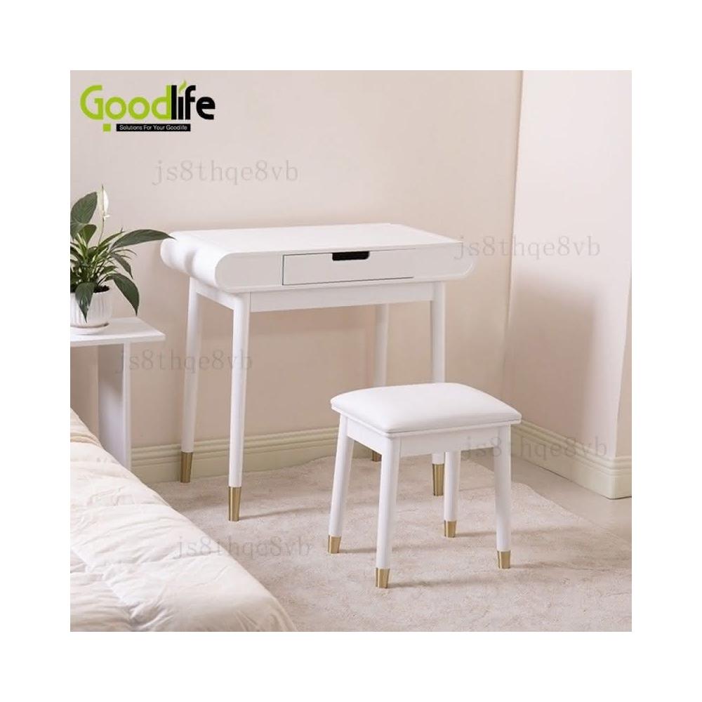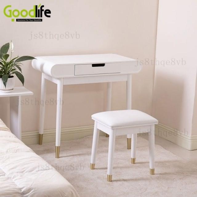 實木梳妝臺臥室現代簡約小戶型圓角高檔化妝桌書桌套裝帶化妝凳