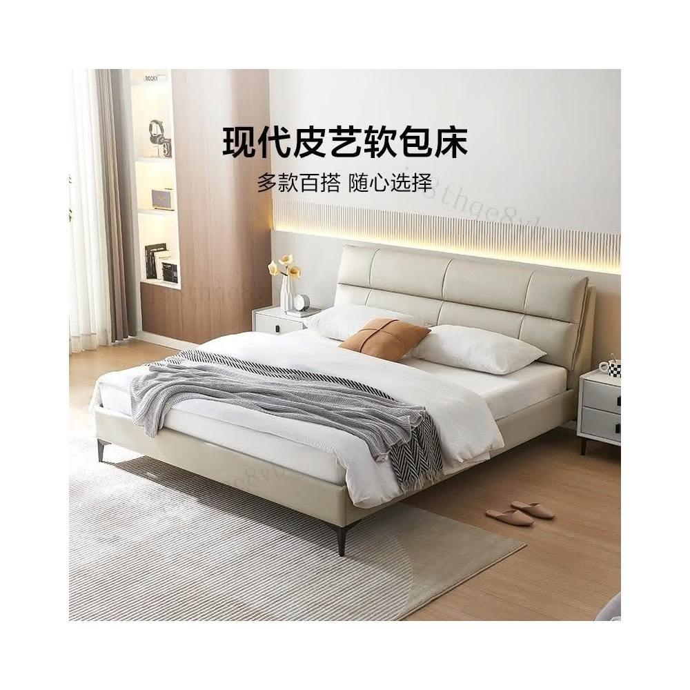 林氏家居林氏木業皮藝床輕奢主臥雙人真皮軟包床1.8米含床墊