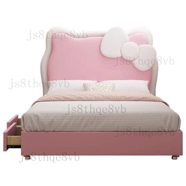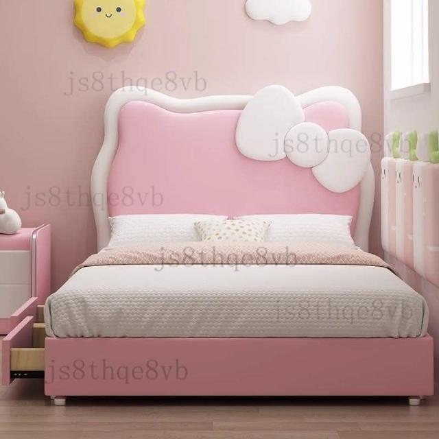 儿童床女孩公主卧室1米5实木单人床粉色多功能储物公主风卡通皮床