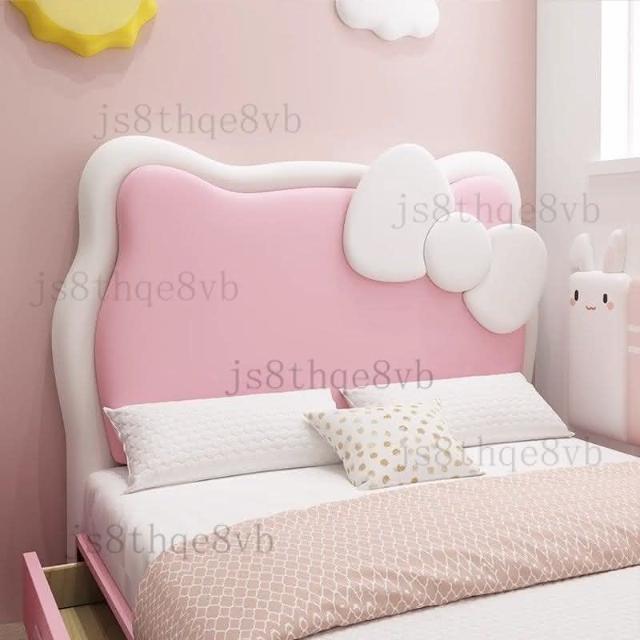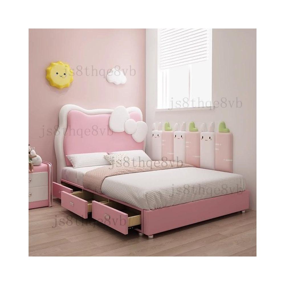 儿童床女孩公主卧室1米5实木单人床粉色多功能储物公主风卡通皮床