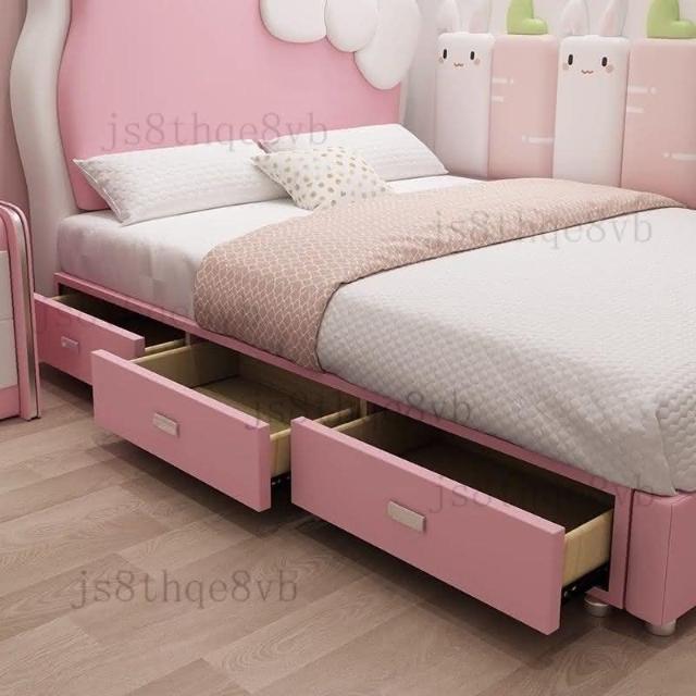 儿童床女孩公主卧室1米5实木单人床粉色多功能储物公主风卡通皮床