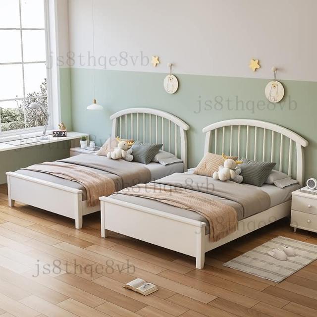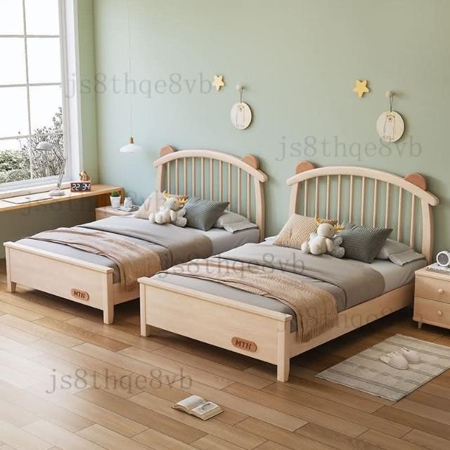 实木儿童床新款男孩床美式小户型家用储物床女孩原木色橡胶木童床