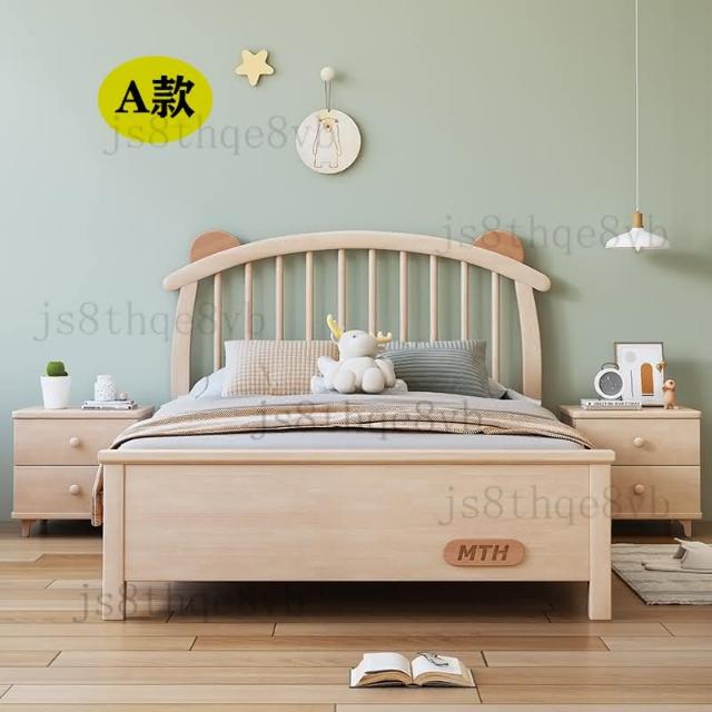 实木儿童床新款男孩床美式小户型家用储物床女孩原木色橡胶木童床