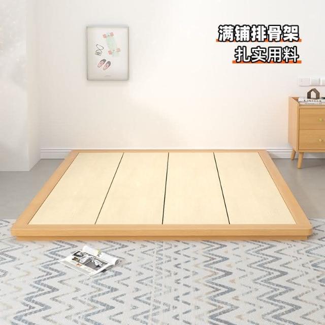 全實木地臺床榻榻米貼地矮床架無床頭落地排骨架日式齊邊無靠背床
