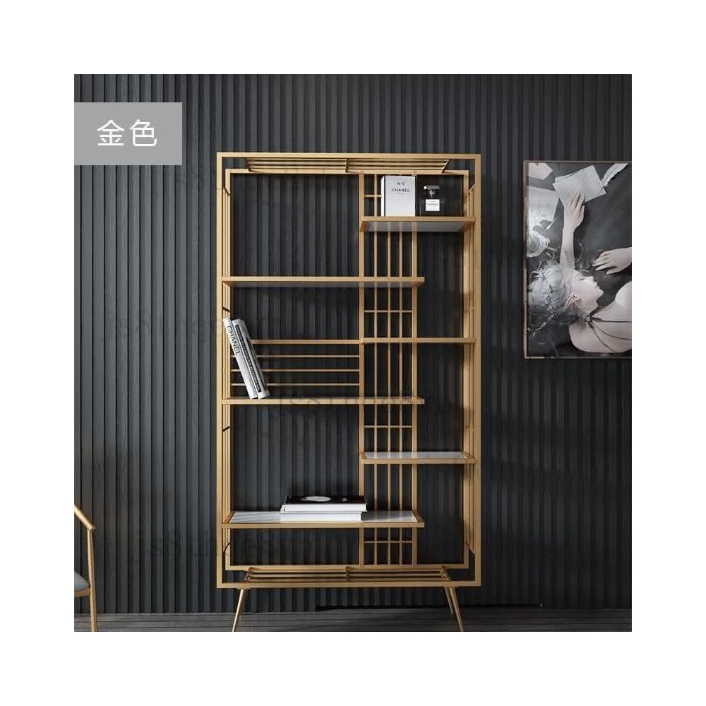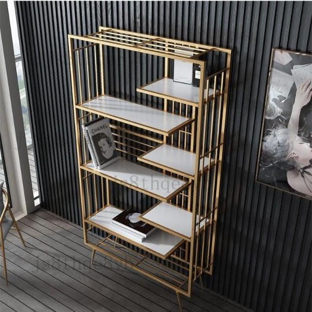 輕奢鐵藝書架北歐風簡約客廳置物架現代書房金屬書櫃落地多層收納