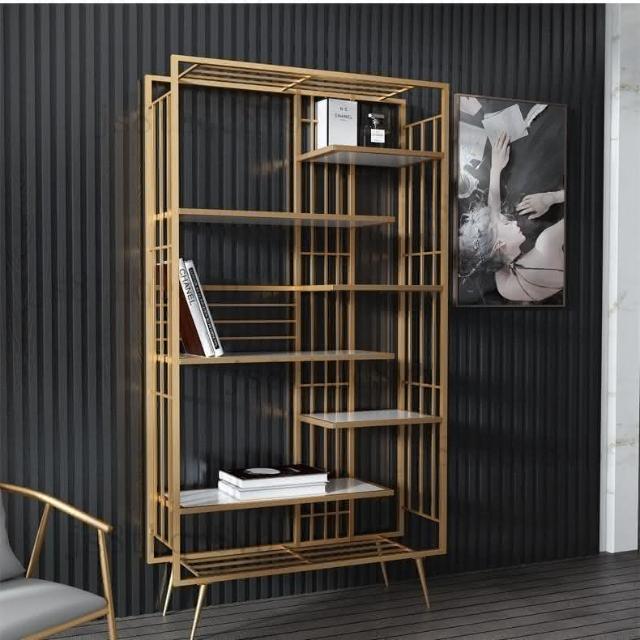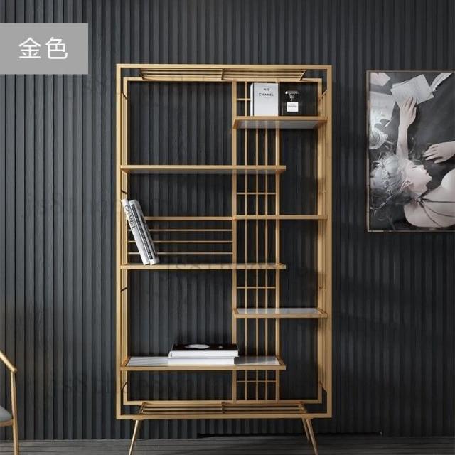 輕奢鐵藝書架北歐風簡約客廳置物架現代書房金屬書櫃落地多層收納