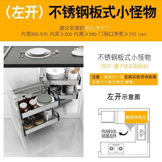 櫥櫃轉角拉籃廚房小怪物廚櫃調味籃不銹鋼阻尼碗碟籃置物架拐角籃