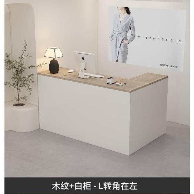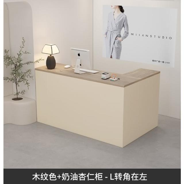 可定製 奶油風服裝店收銀台轉角櫃檯簡約現代女裝店鋪吧台桌L型美容前台收銀檯 接待檯 收納櫃 吧檯