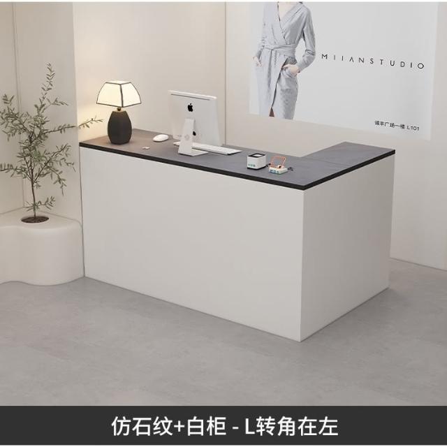 可定製 奶油風服裝店收銀台轉角櫃檯簡約現代女裝店鋪吧台桌L型美容前台收銀檯 接待檯 收納櫃 吧檯