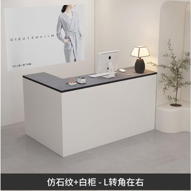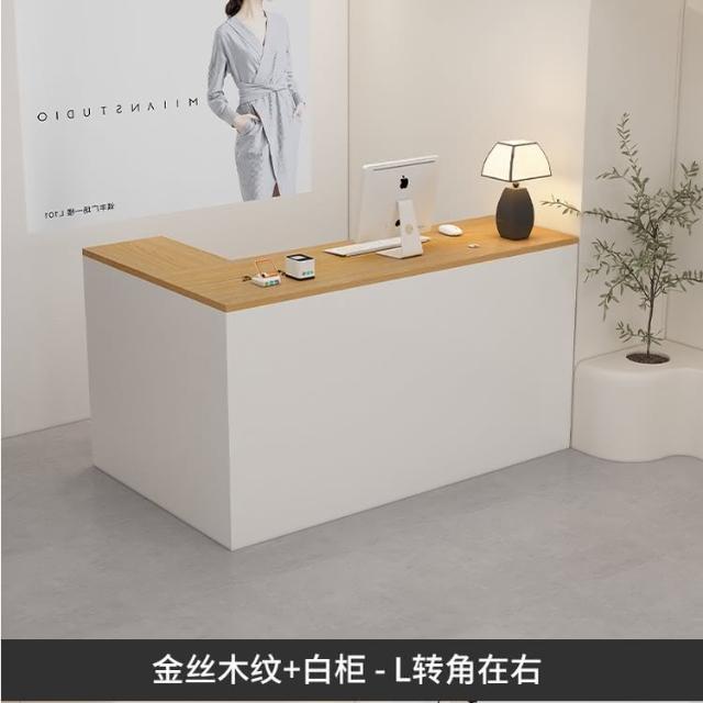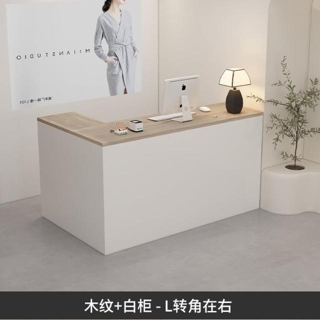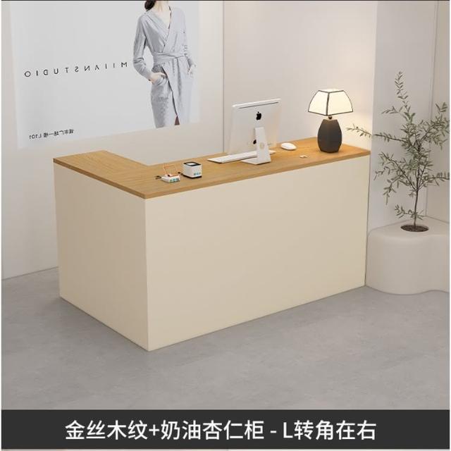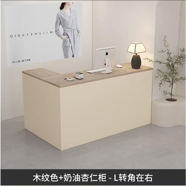 可定製 奶油風服裝店收銀台轉角櫃檯簡約現代女裝店鋪吧台桌L型美容前台收銀檯 接待檯 收納櫃 吧檯