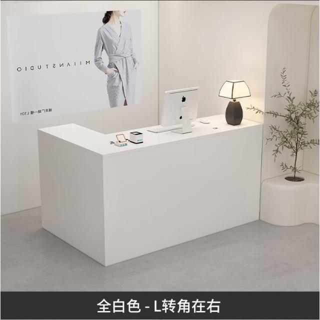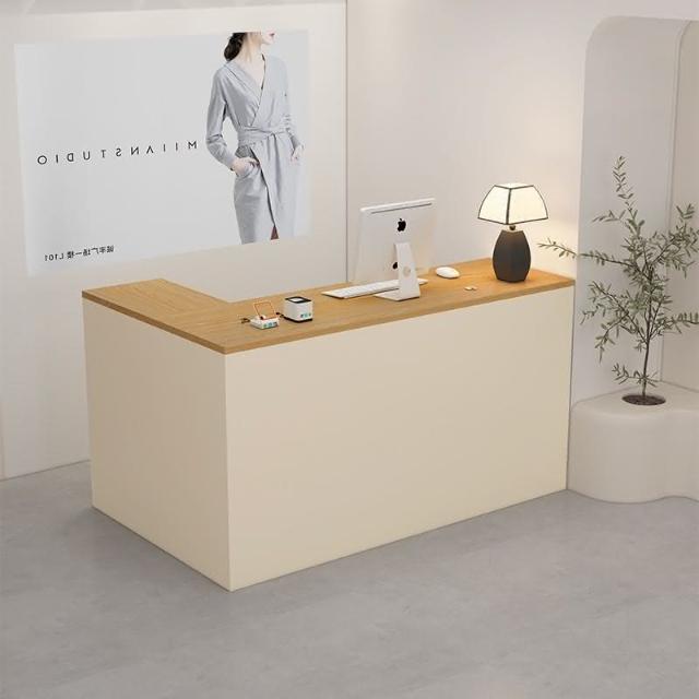 可定製 奶油風服裝店收銀台轉角櫃檯簡約現代女裝店鋪吧台桌L型美容前台收銀檯 接待檯 收納櫃 吧檯