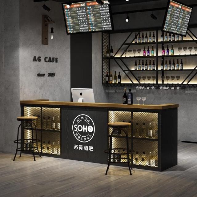 可開發票 復古工業風收銀台酒吧吧台桌餐廳燒烤店前台櫃檯檯球商用拐角定製收銀台 收銀櫃 儲物櫃 收納櫃