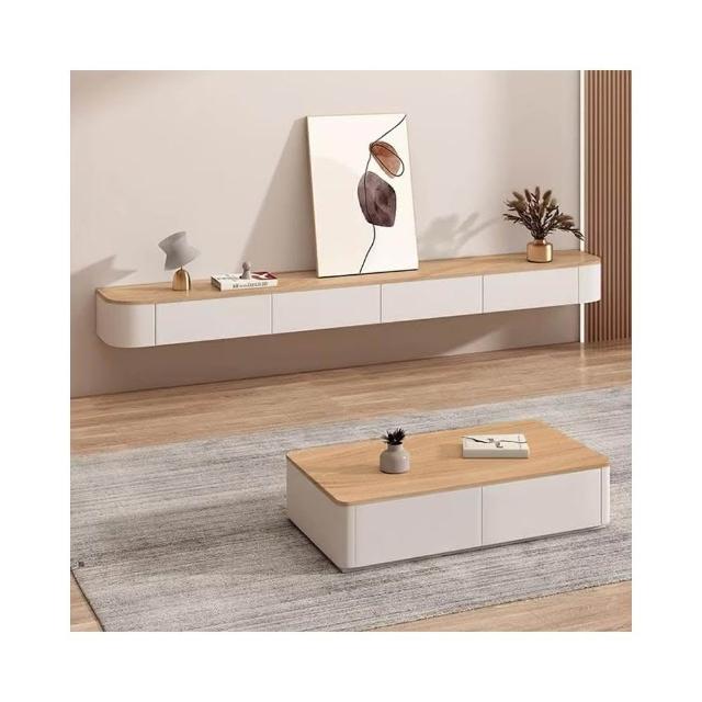 實木懸空電視櫃簡約現代懸挂式客廳家用小戶型懸浮岩板茶几電視櫃電視櫃 收納櫃 儲物櫃