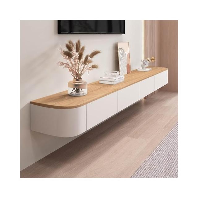 實木懸空電視櫃簡約現代懸挂式客廳家用小戶型懸浮岩板茶几電視櫃電視櫃 收納櫃 儲物櫃