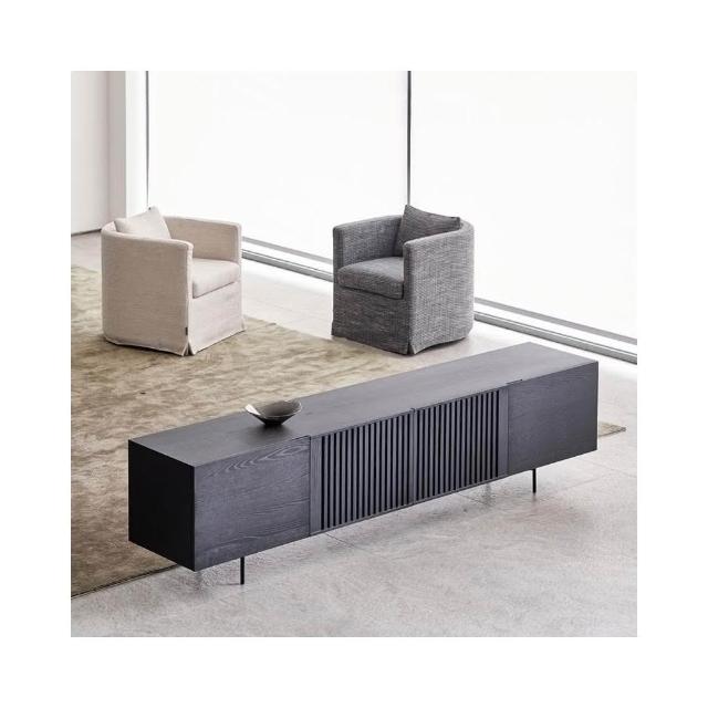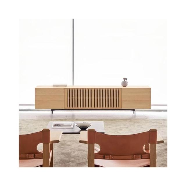 客廳原木地櫃對開格柵門落地視聽櫃儲物櫃電視櫃 儲物櫃 收納櫃