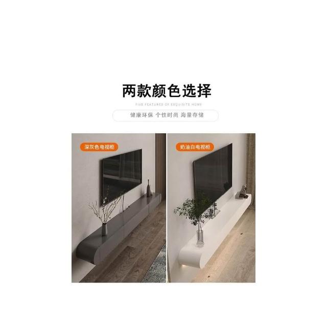 壁掛式客廳網紅現代簡約懸空小戶型懸浮實木白色奶油侘寂風電視櫃電視櫃 懸空電視櫃 儲物櫃 收納櫃