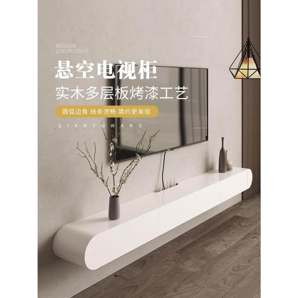 壁掛式客廳網紅現代簡約懸空小戶型懸浮實木白色奶油侘寂風電視櫃電視櫃 懸空電視櫃 儲物櫃 收納櫃