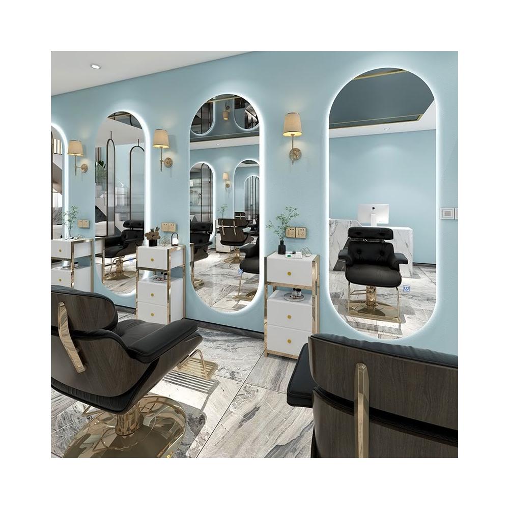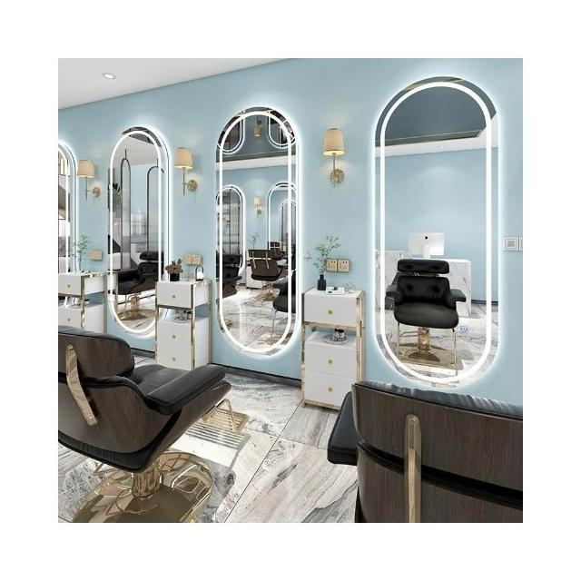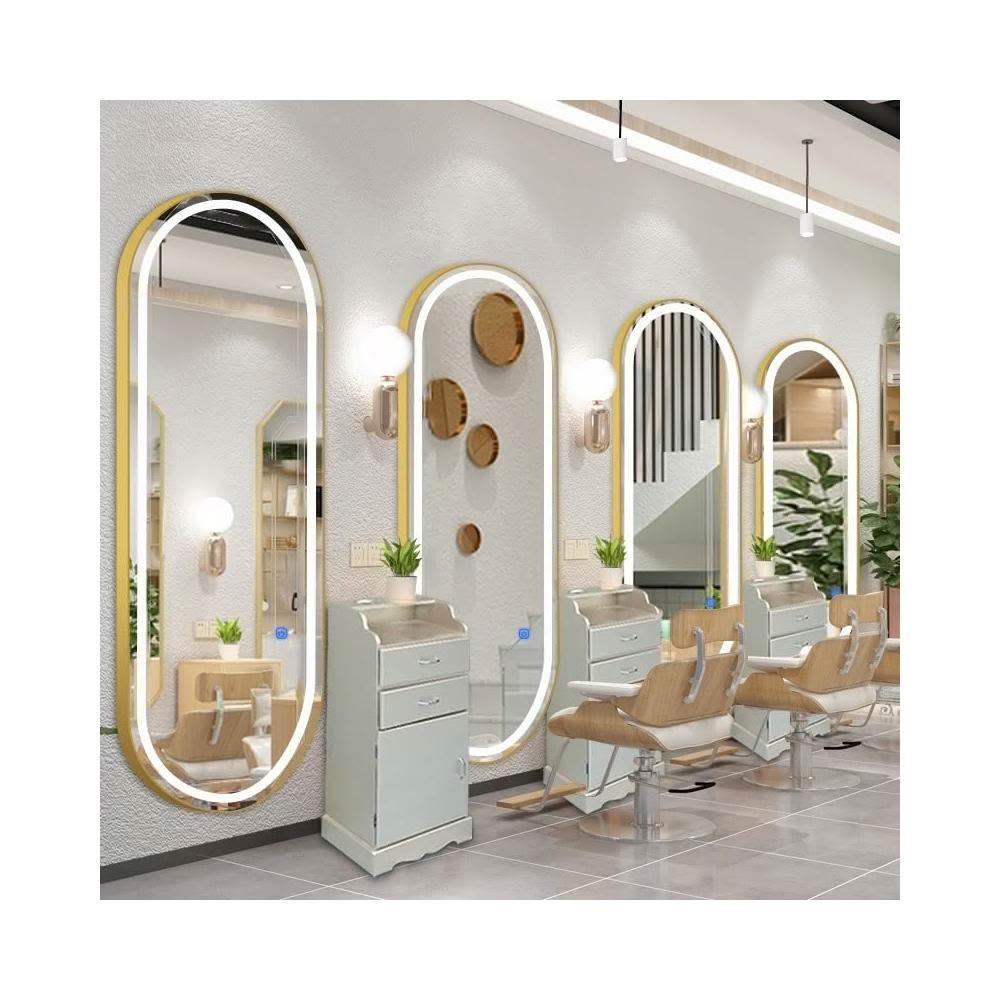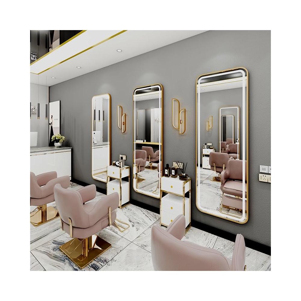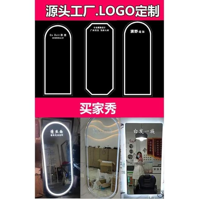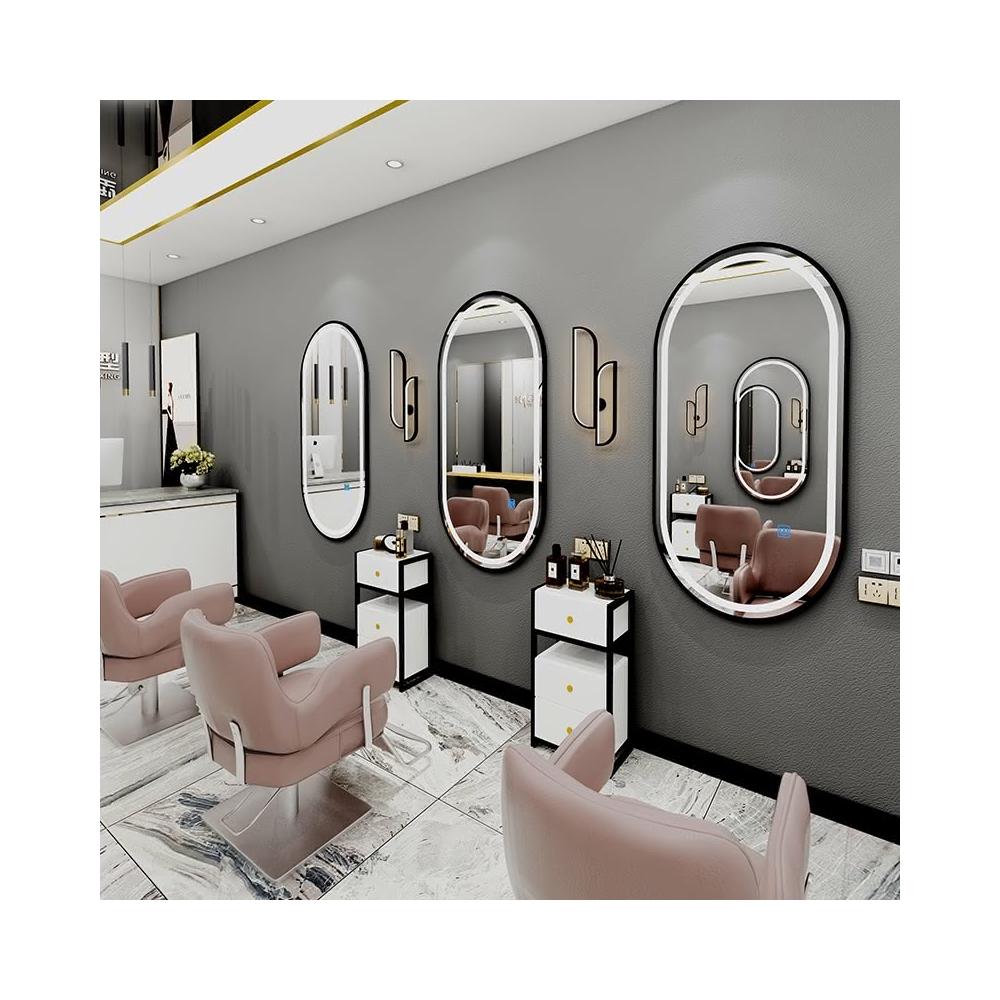 簡約理髮店鏡台髮廊專用網紅鏡子 帶燈潮掛牆單面美髮店鏡子可定製鏡子
