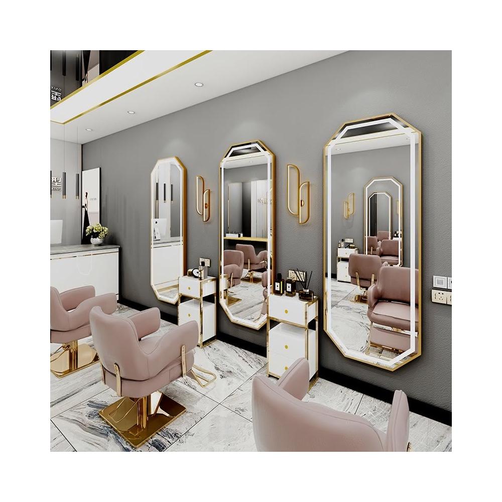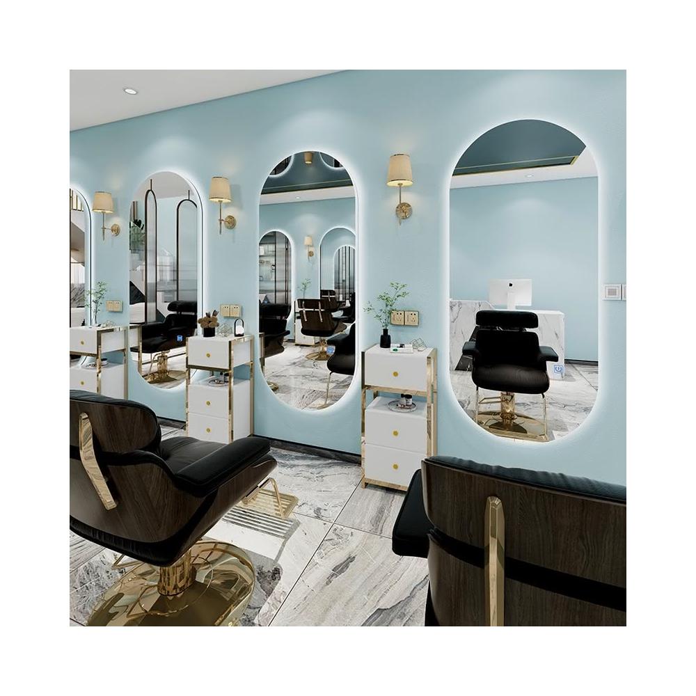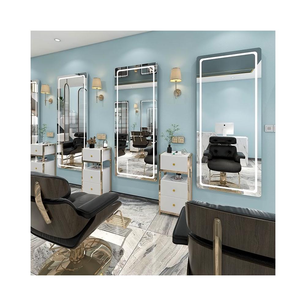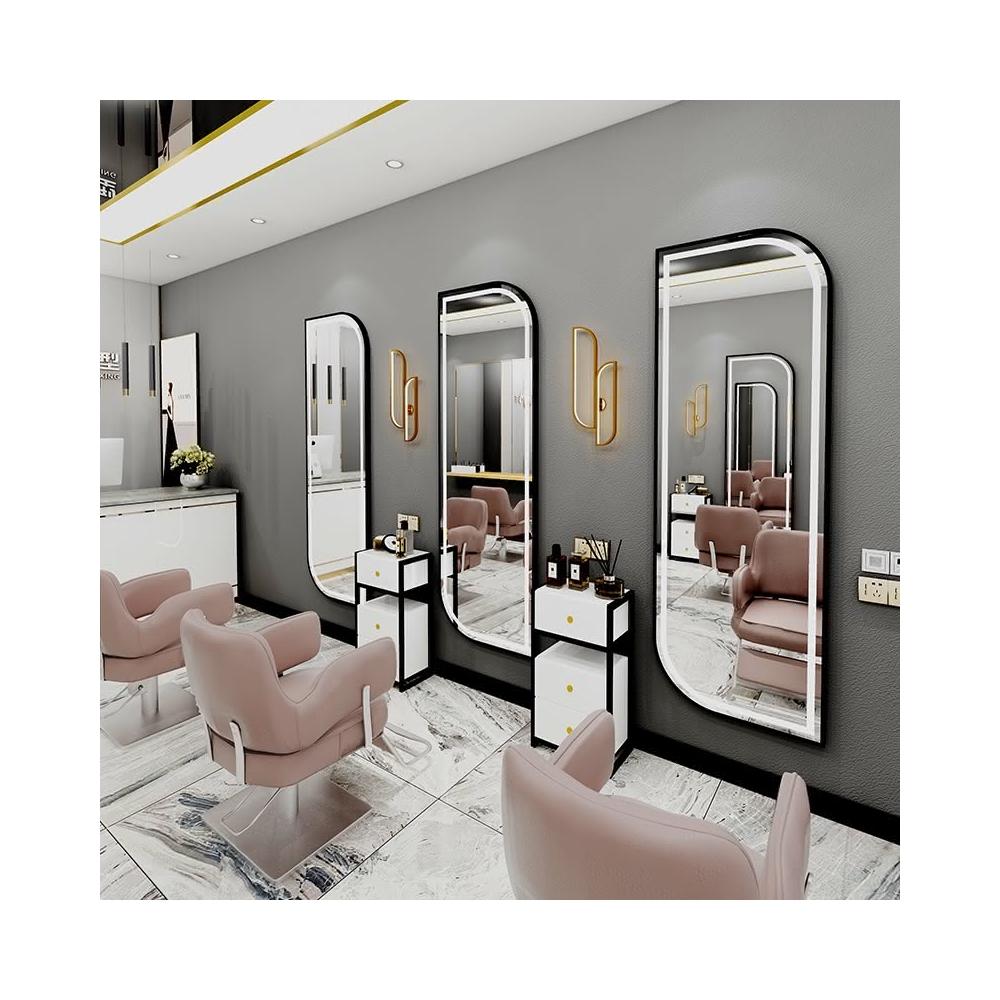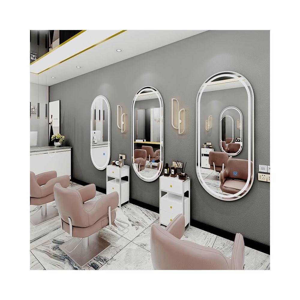簡約理髮店鏡台髮廊專用網紅鏡子 帶燈潮掛牆單面美髮店鏡子可定製鏡子