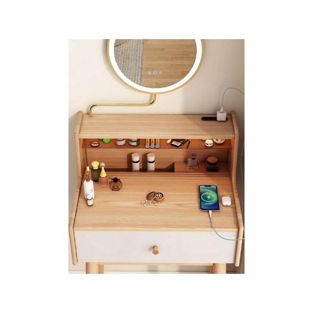 全實木卧室迷你化妝台60cm小戶型帶燈鏡化妝桌化妝台 梳妝台 化妝桌