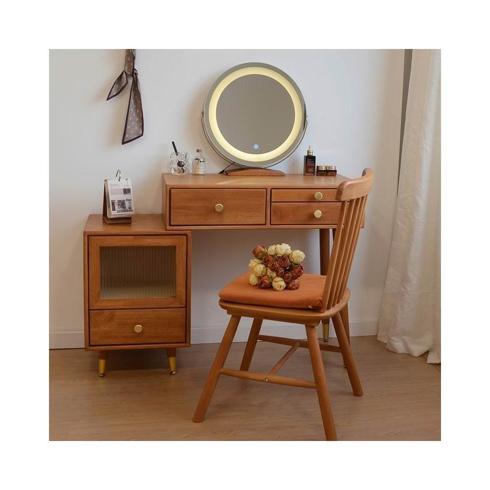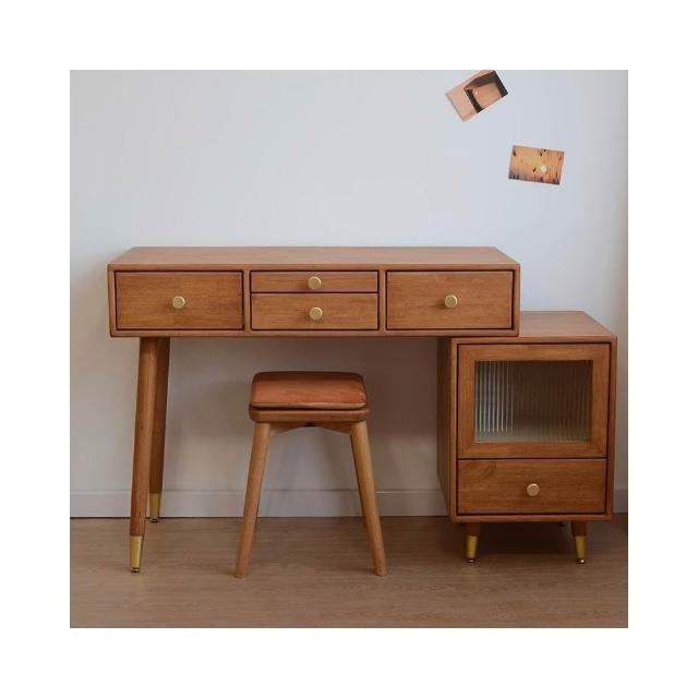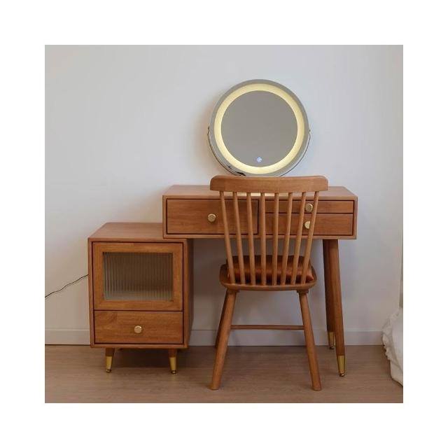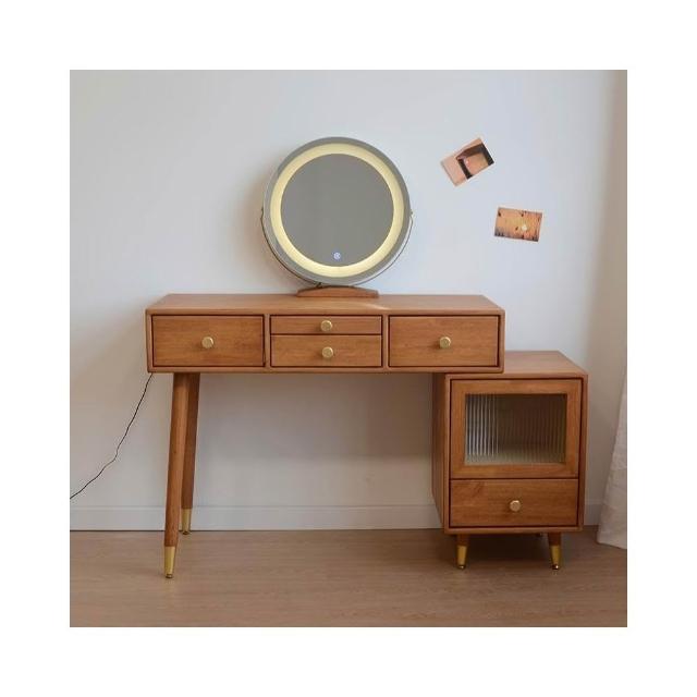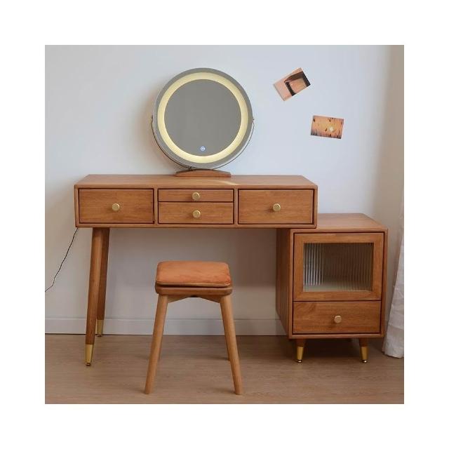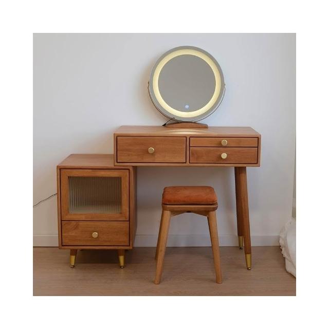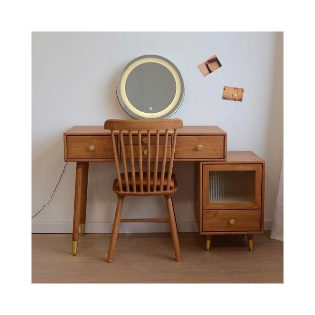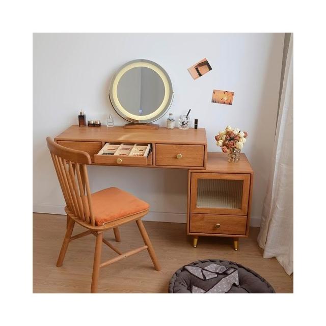 實木日式櫻桃木色梳妝桌椅鏡子組合卧室化妝台帶燈現代簡約化妝桌化妝台 梳妝台 化妝桌
