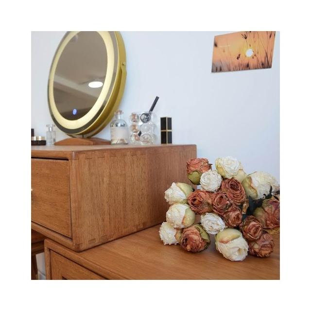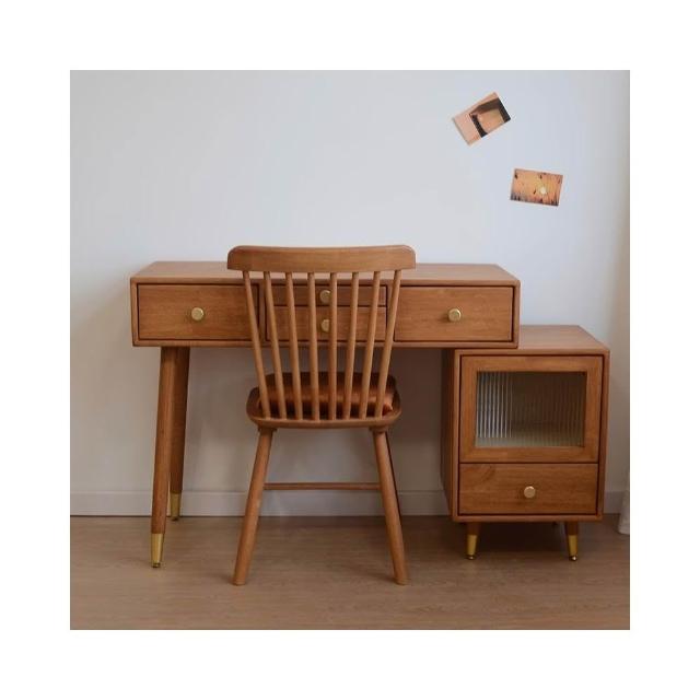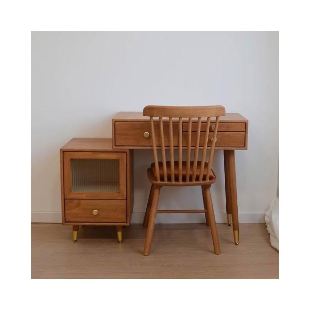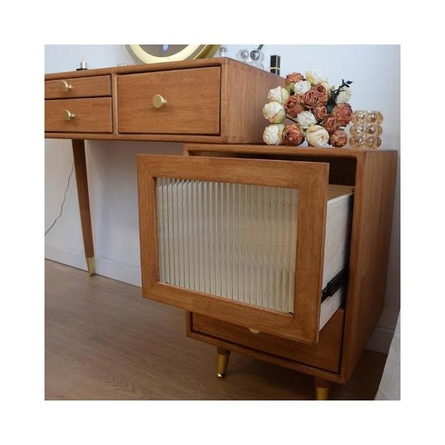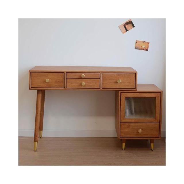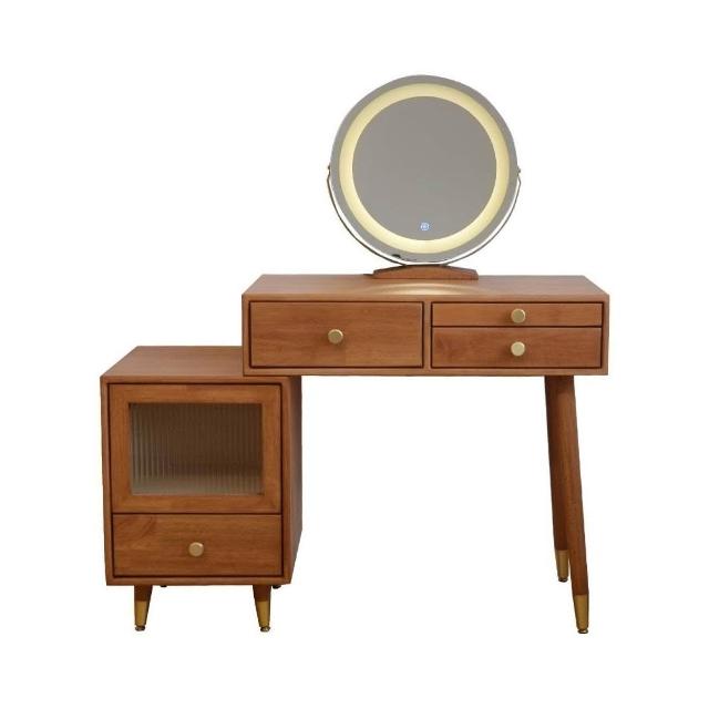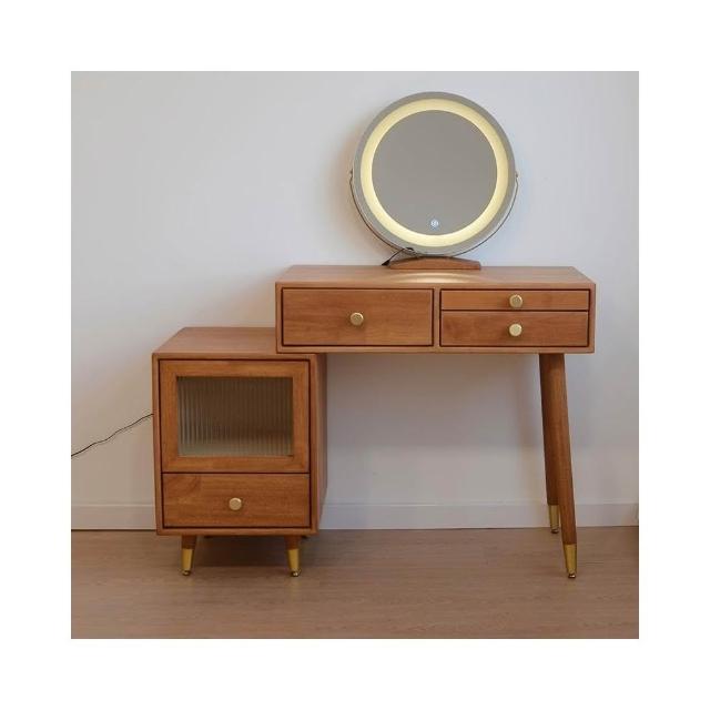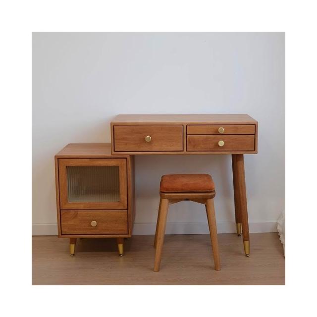 實木日式櫻桃木色梳妝桌椅鏡子組合卧室化妝台帶燈現代簡約化妝桌化妝台 梳妝台 化妝桌