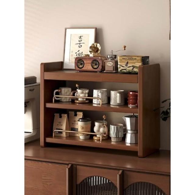 復古風桌面杯架 實木多層置物架 杯子收納架 水杯咖啡杯茶具展示架子