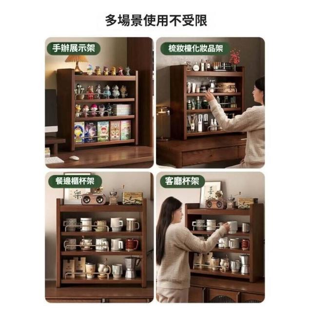 復古風桌面杯架 實木多層置物架 杯子收納架 水杯咖啡杯茶具展示架子