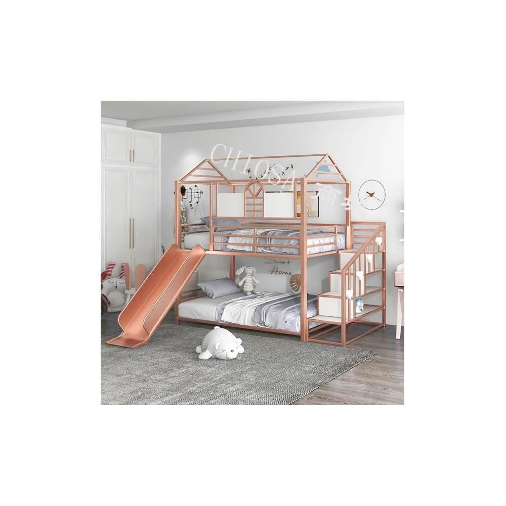兒童床高架男孩上下床雙層床公主上下鋪高低床滑滑梯帶衣櫃