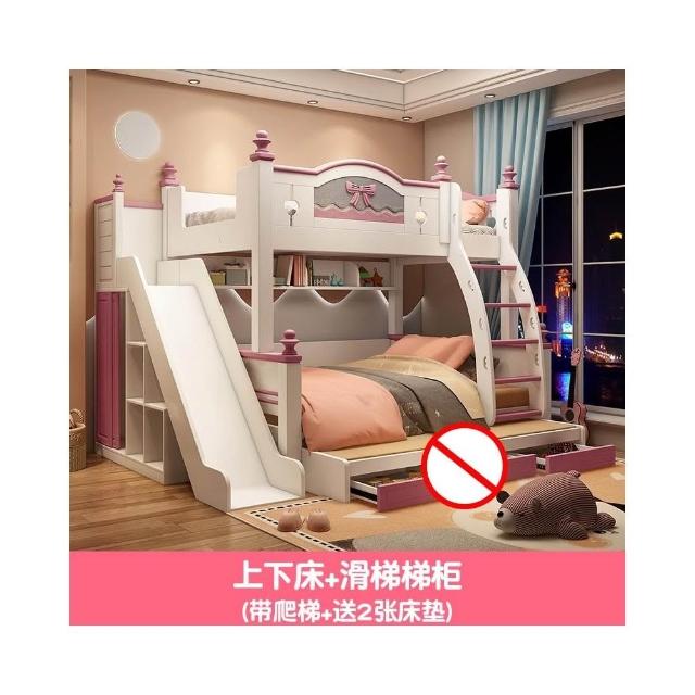 上下床 高低床 兒童床 公主床 女孩 粉色 雙層床 實木 子母床 滑梯