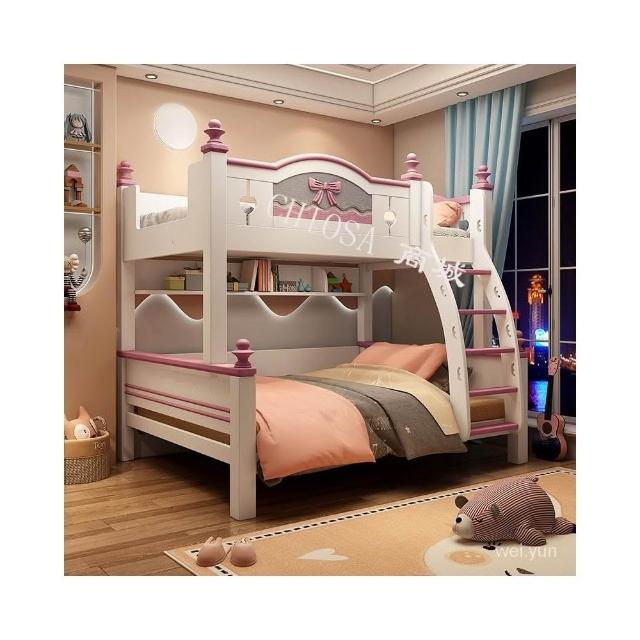 上下床 高低床 兒童床 公主床 女孩 粉色 雙層床 實木 子母床 滑梯