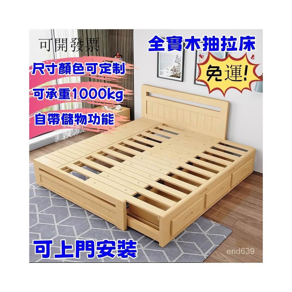實木床 折疊床 抽拉床 推拉床 儲物床 實木伸縮床 現代簡約小戶型抽拉雙人床儲物單人床多功能子母床拖床