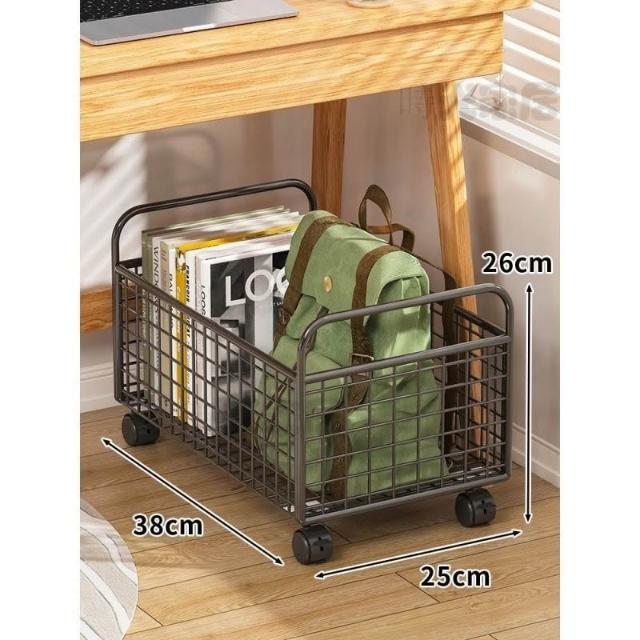 桌下書本收納箱傢用書包架子書桌底下書籍收納櫃 可移動書包置物架 滑輪收納箱 桌下收納箱 書本收納盒 包包收納箱 移動書包