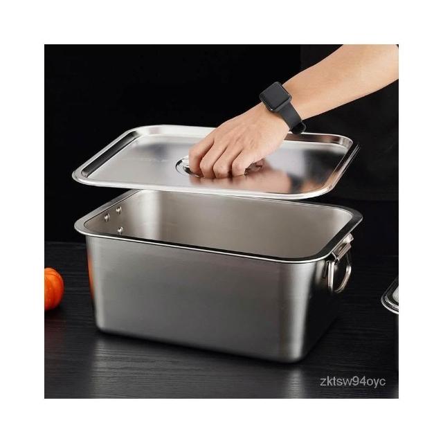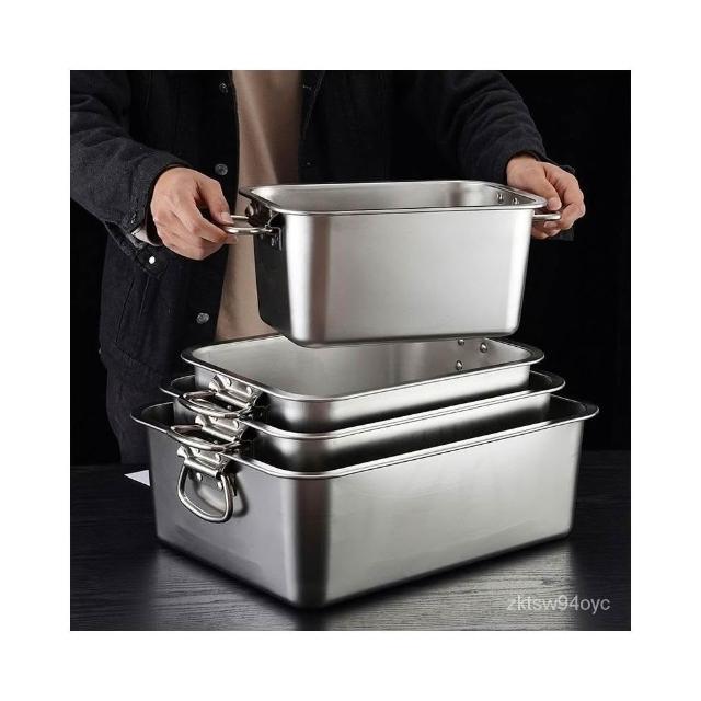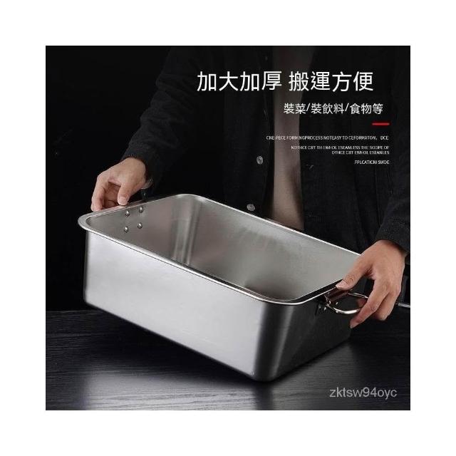 工廠直銷❀特厚不銹鋼方盆長方形方盤帶把手商用大號餐盆帶提手裝菜盆炸鍋盆