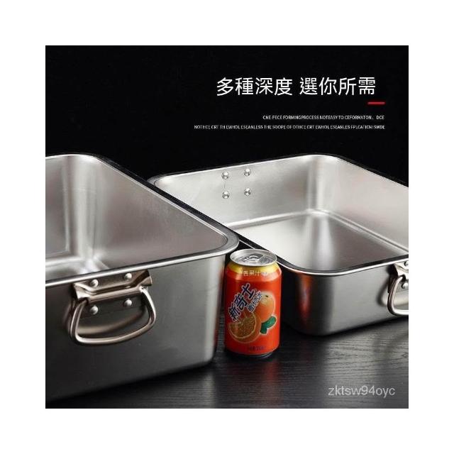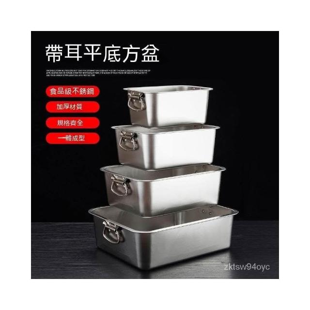 工廠直銷❀特厚不銹鋼方盆長方形方盤帶把手商用大號餐盆帶提手裝菜盆炸鍋盆