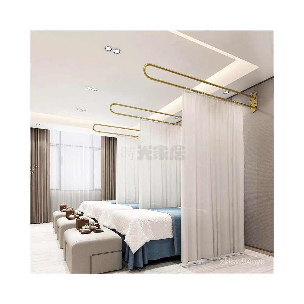 美容床隔斷 美容院養生館 空間隔斷簾 隔斷簾 窗簾 門簾桿布簾 圍簾支撐架 鐵藝U型L型 服裝店換衣遮人簾 按摩店遮醜簾
