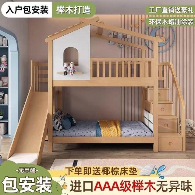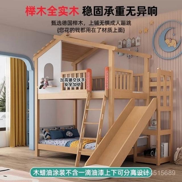代客組裝 含運-全實木帶滑梯樹屋床兒童床櫸木上下床多功能高低雙層床男孩子母床 PQ5Q