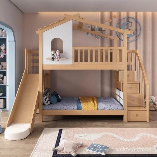 代客組裝 含運-全實木帶滑梯樹屋床兒童床櫸木上下床多功能高低雙層床男孩子母床 PQ5Q
