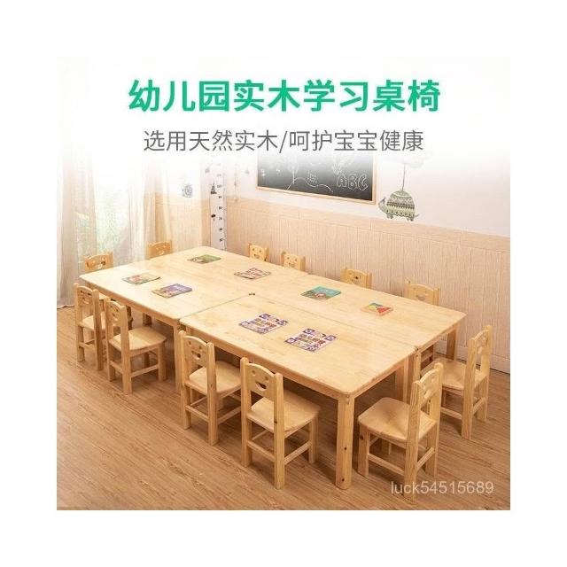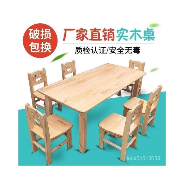 環保實木 幼兒園實木桌椅兒童鬆木寫字桌子套裝寶寶早敎玩具學習桌