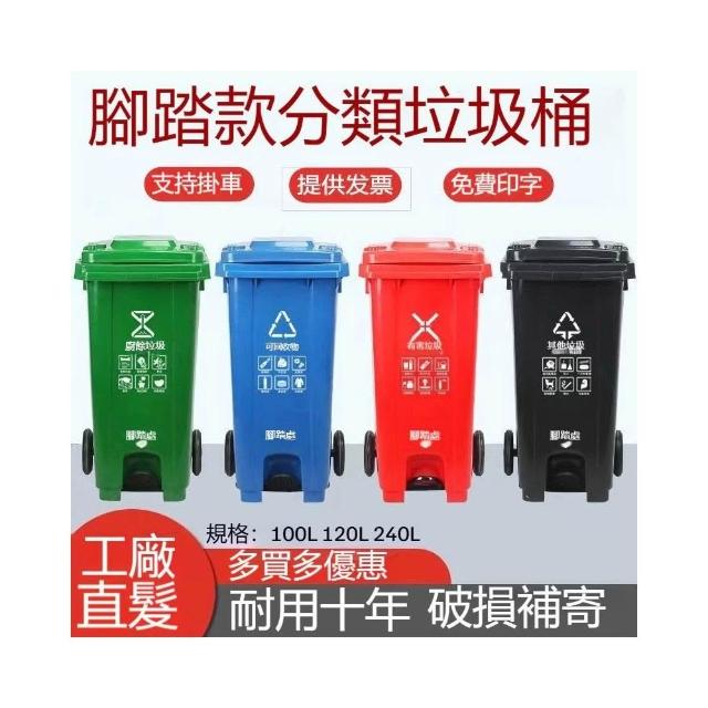 垃圾桶 腳踏垃圾桶 240L戶外垃圾桶大一號環衛脚踏式商用加厚大碼塑膠大型分類桶大容量垃圾桶