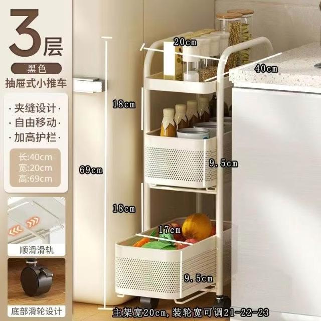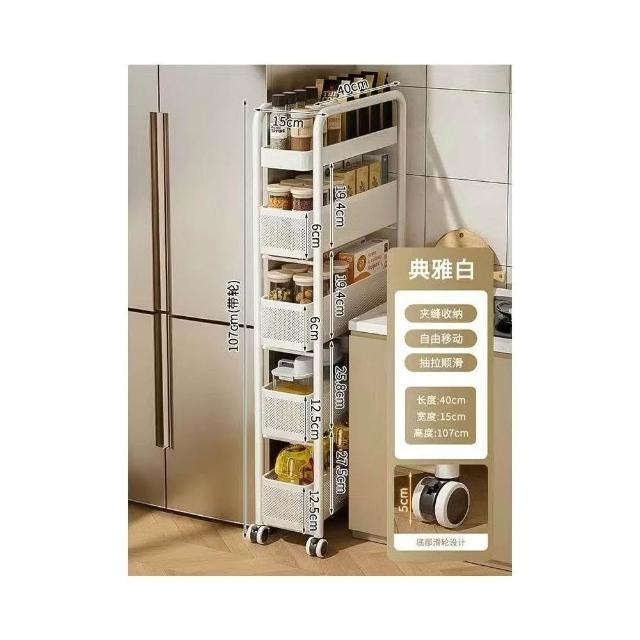冰箱側邊超窄置物櫃 抽拉置物櫃 家用儲物櫃 冰箱側櫃 小推車收納架 夾縫置物架 廚房置物架 收納架 超薄收納架