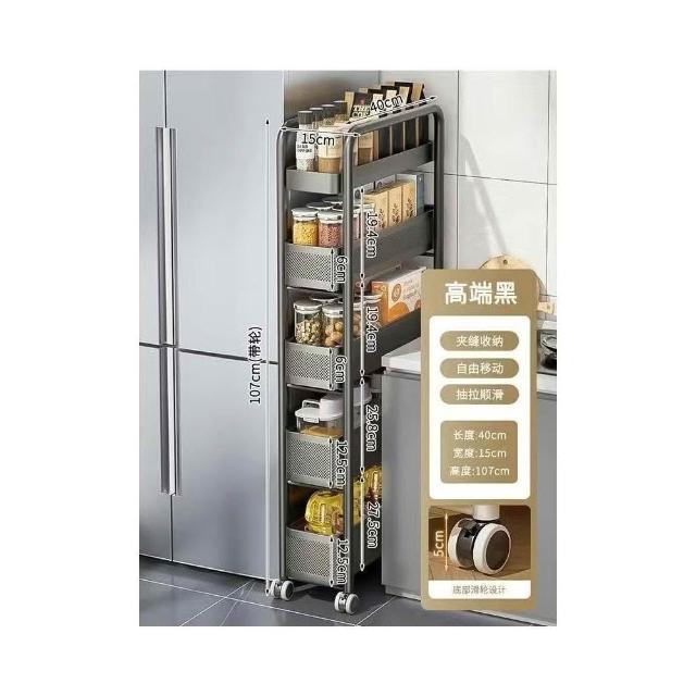 冰箱側邊超窄置物櫃 抽拉置物櫃 家用儲物櫃 冰箱側櫃 小推車收納架 夾縫置物架 廚房置物架 收納架 超薄收納架