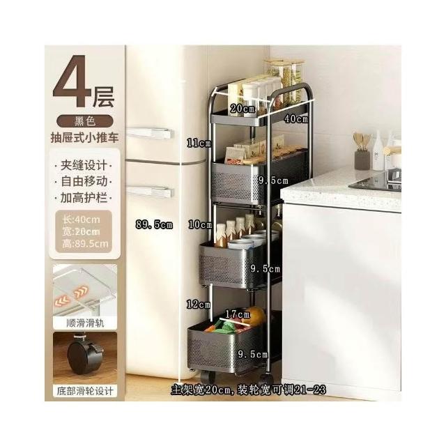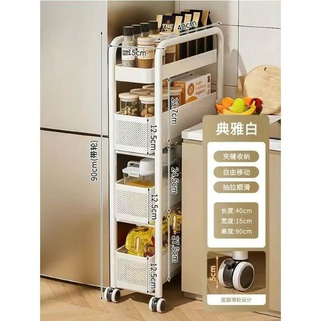 冰箱側邊超窄置物櫃 抽拉置物櫃 家用儲物櫃 冰箱側櫃 小推車收納架 夾縫置物架 廚房置物架 收納架 超薄收納架