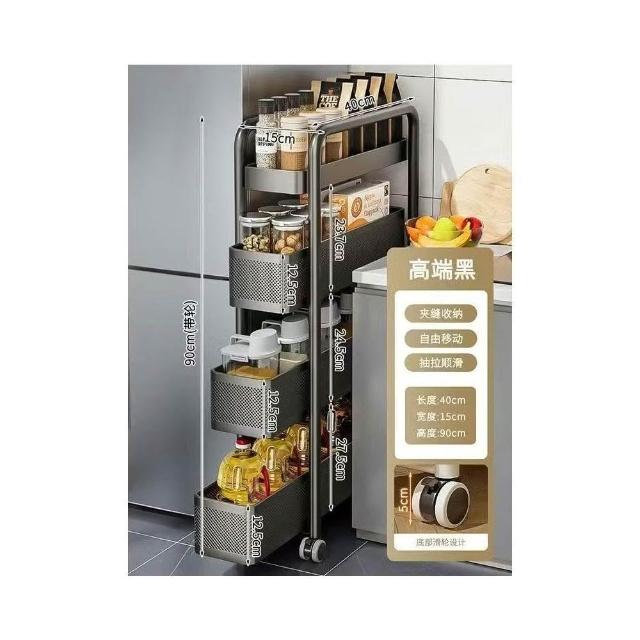 冰箱側邊超窄置物櫃 抽拉置物櫃 家用儲物櫃 冰箱側櫃 小推車收納架 夾縫置物架 廚房置物架 收納架 超薄收納架