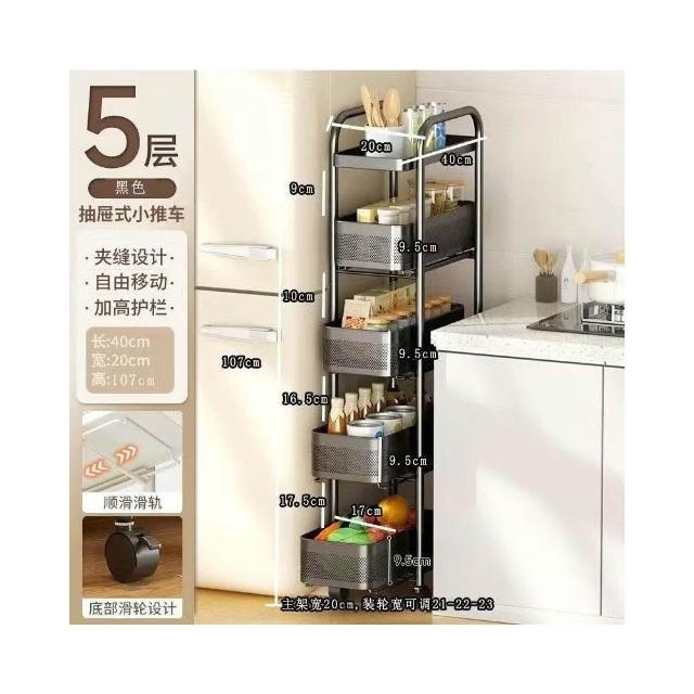 冰箱側邊超窄置物櫃 抽拉置物櫃 家用儲物櫃 冰箱側櫃 小推車收納架 夾縫置物架 廚房置物架 收納架 超薄收納架