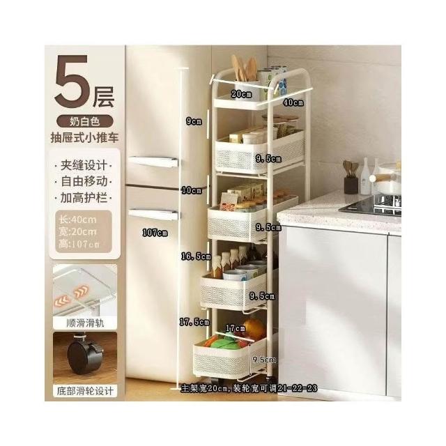 冰箱側邊超窄置物櫃 抽拉置物櫃 家用儲物櫃 冰箱側櫃 小推車收納架 夾縫置物架 廚房置物架 收納架 超薄收納架