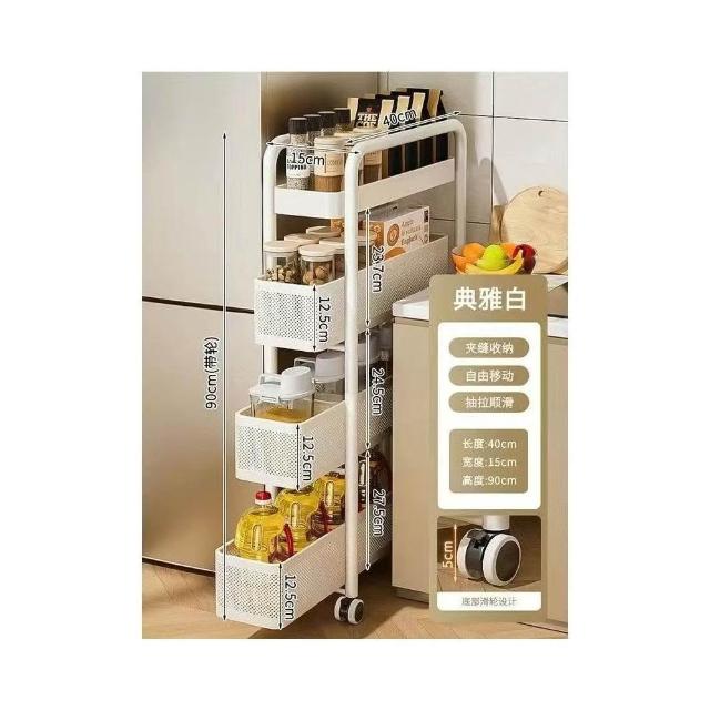 冰箱側邊超窄置物櫃 抽拉置物櫃 家用儲物櫃 冰箱側櫃 小推車收納架 夾縫置物架 廚房置物架 收納架 超薄收納架