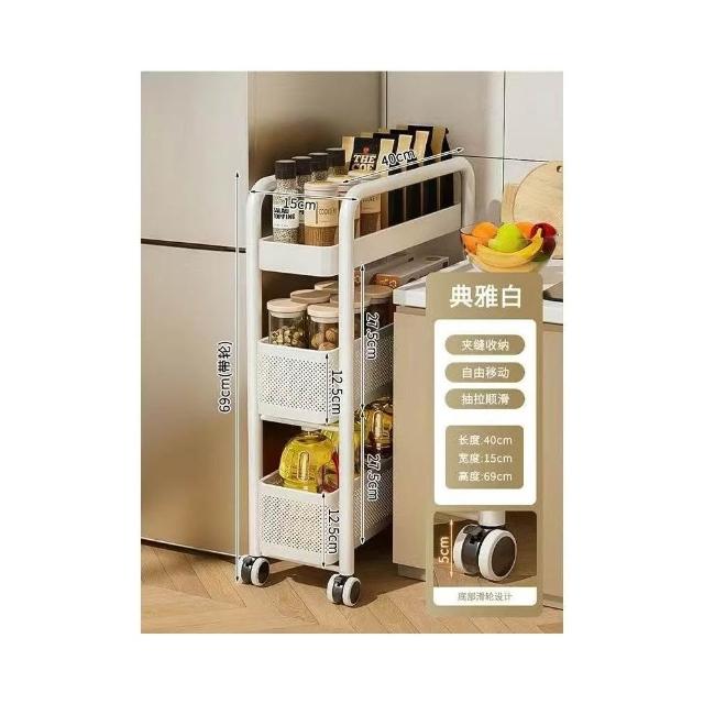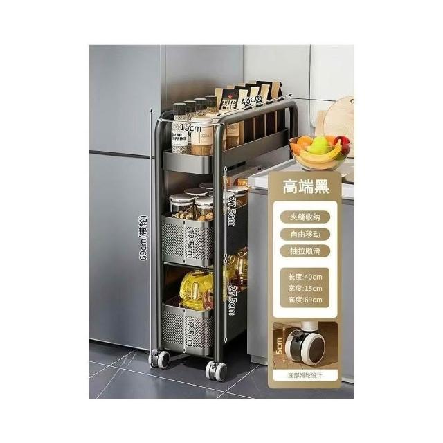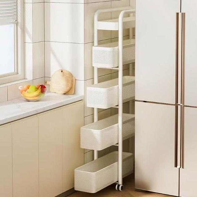 冰箱側邊超窄置物櫃 抽拉置物櫃 家用儲物櫃 冰箱側櫃 小推車收納架 夾縫置物架 廚房置物架 收納架 超薄收納架